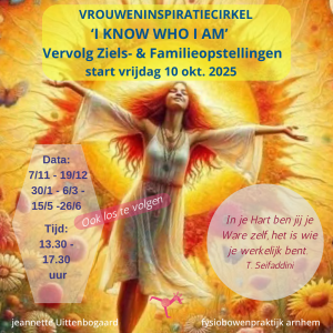 Wil je na een van onze vrouwenretreats of na de introductieworkshop Ziels- en Familieopstellingen’ I know who I am‘ verder op het pad van heling & herinnering?